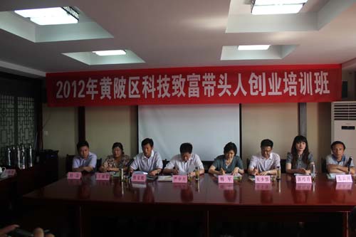 市科协网讯 6月9日-13日, 2012年国家级科技致富带头人创业培训班在黄陂区地丰园隆重举行。这次培训班是由黄陂区科协、东西湖科协联合举办,东西湖区农广校承办的。市科协副主席杨军和区委常委、区委宣传部部长严中兴亲临培训班,并在开班典礼上分别作了重要讲话。
