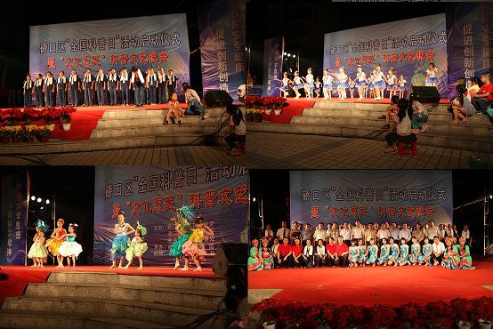 科普文艺晚会历时1个小时,既有宣传科学素质纲要“节约能源资源 保护生态环境”主题工作的时装表演“环保秀”和情景舞蹈《福贻子孙》,又有硚口区创编的反映地域民俗表演特点的湖北音乐慢板《硚口科协展风采》及汉口码头号子《科普伴我行》等节目,节目中还穿插了围绕“食品安全与公众健康”宣传主题的科普知识抢答。