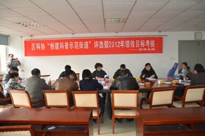 区科协年初召开了工作部署会,对2012年区科协对街道科协的工作要求和任务指标进行了科学的规划部署,与各街道签定了《目标责任书》,并布置了《创建科普示范街道》工作;半年总结期间,区科协组织召开科普工作推进会,对各街科协创建科普示范街道工作和完成绩效目标情况进行摸底,并对各街道科协工作中遇到的问题和困难给予了及时地指导和帮助。