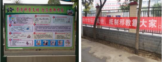 二是充分利用班级板报、学校橱窗,张贴宣传标语和反邪教警示教育图片,组织学生观看,帮助学生直观形象地认识邪教的危害性。