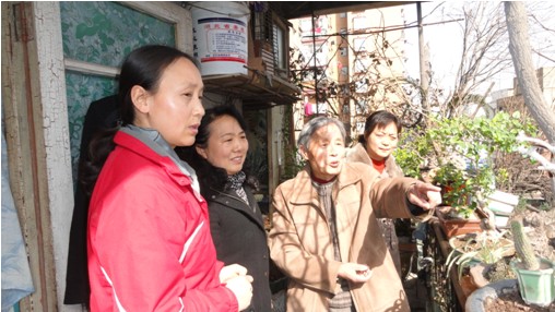 图为她为群众讲解养花知识。