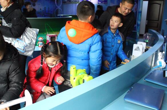 讲座结束后,组织青少年一起参观红霞社区科普馆。通过向孩子们讲解太阳能的运用、污水处理的工艺流程、海市蜃楼和磁悬浮地球仪的科学原理等,让孩子们在拨动无弦琴、触摸微光球、感受手不能抖等游戏中,既提升了青少年学科学、爱科学、用科学的兴趣,又获得了一次健康、快乐、有意义、有收获的寒假体验。