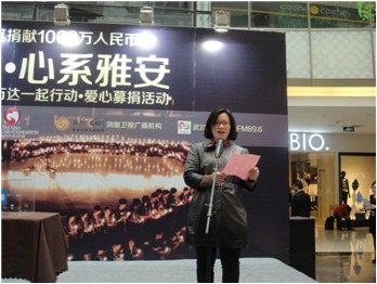 活动开始,由唐家墩街街道办事处副主任郭贇作募捐倡议:呼吁大众为雅安伸出援手,奉献爱心。在其后的半个小时里,菱角湖万达广场内部品牌商家、机构及社会各界人士纷纷慷慨解囊,奉献爱心。共募集善款43348元。