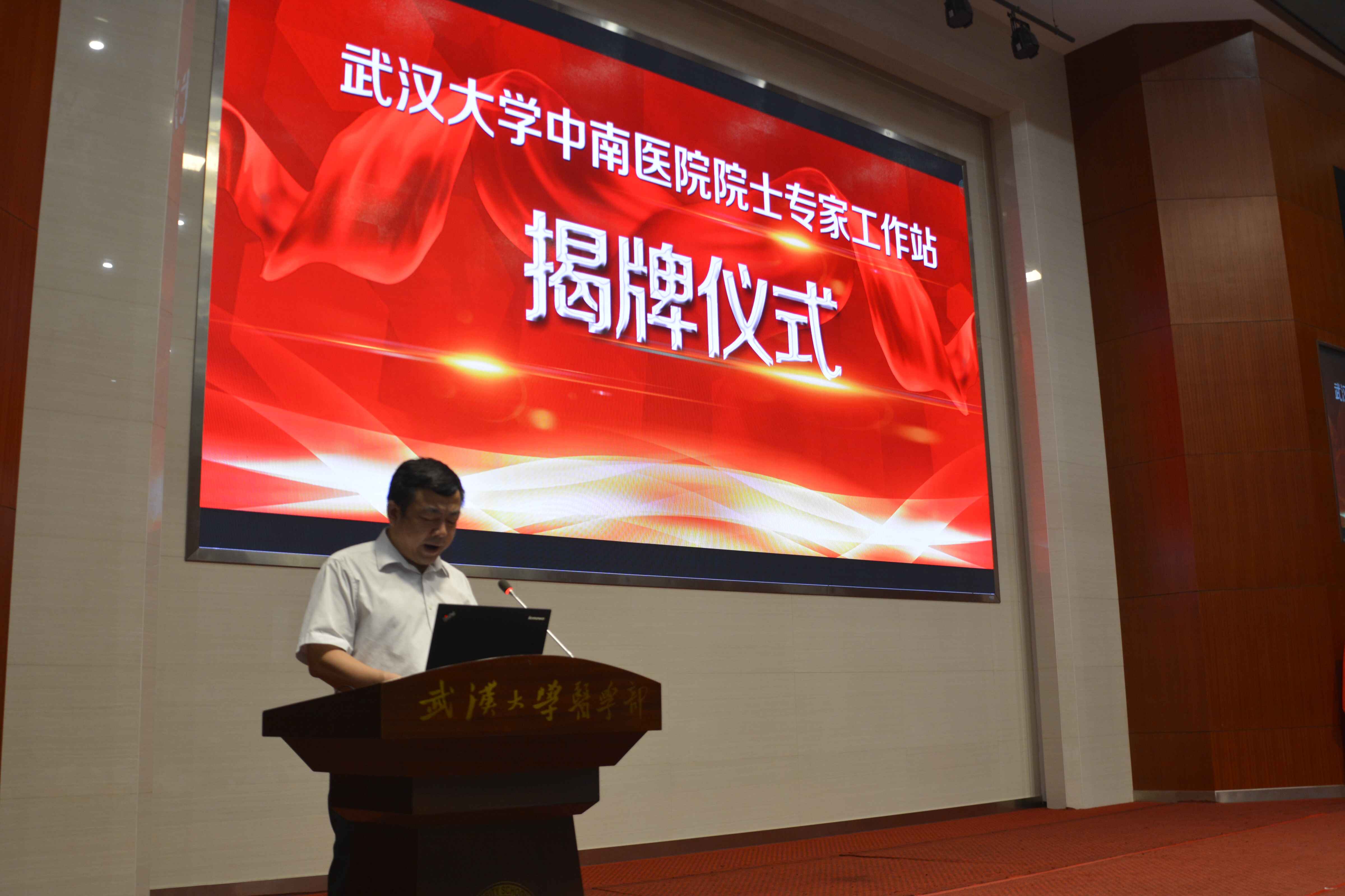 随后中国工程院党组书记、院长李晓红,武汉市委副书记、代市长周先旺,武汉大学党委副书记、校长窦贤康,中国工程院院士孙颖浩,中国工程院院士李兆申和武汉大学中南医院院长王行环一起为武汉大学中南医院院士专家工作站揭牌。