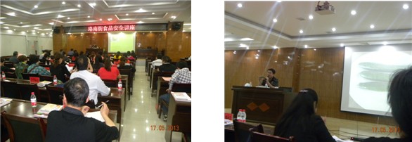 为倡导全民对食品安全、环保健康的理念意识,做好食品安全、环保健康知识的普及工作。2013年5月17日上午,珞南街科协联合街安全办组织办事处各科室领导、社区书记、主任及安全协管员在街310会议室开展了“珞南街食品安全知识讲座”公益宣传活动,此次讲座由湖北省文卫健康中心、湖北省环保协会李鸿平授课。