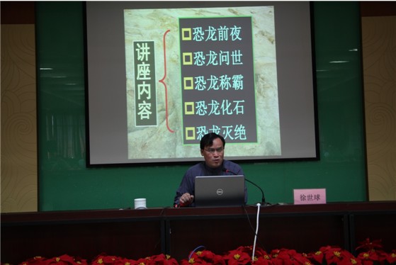 6月1日徐世球在乌鲁木齐文化讲坛为市民作了《回到恐龙时代》的科普报告。报告从恐龙前夜、恐龙问世、恐龙称霸、恐龙化石、恐龙灭绝等5个方面入手,栩栩如生地向听众讲述了恐龙的种类、发展、繁衍乃至灭亡的全过程,向听众揭示了爱护自然、保护环境的重要性和必要性。