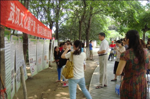 此次宣传日活动主要以现场讲解、图片展示、悬挂横幅、张贴标语和发放宣传单等形式进行,硚口区“非物质文化遗产”项目代表性传承人龙从发大师亲临现场为大家讲解。活动现场,展示了木雕船模技艺、小口径瓶内画、汉正街招牌、汉口码头号子、古玩囊匣制作、老大兴园鮰鱼制作、谈炎记水饺、武昌鱼制作等硚口区“非物质文化遗产”项目内容。