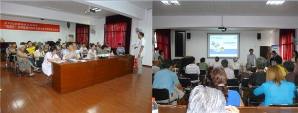 虽然气温高达36℃,但军院社区休养所二楼会议室坐满听课的辖区老干部和老年居民。到会约50名老干部、老年居民认真听了讲座,由同济医院孙教授带队的5个评委对此次授课进行了点评,居民现场进行了满意度测评。区卫生局宣教科的李科长参加了今天的首场启动仪式并讲了话。社区书记张红缨号召市民争创全国卫生环保城市,提高健康意识。