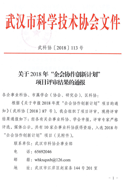 关于2018年“企会协作创新计划”项目评审结果的通报