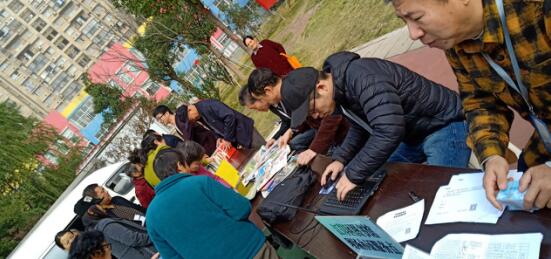 在这次活动现场,有意愿办理借阅卡的居民,可以凭借身份证免费办理。居民们都十分爱好读书,纷纷询问借阅卡如何办理、如何使用。大家排起长队来领取图书借阅卡。