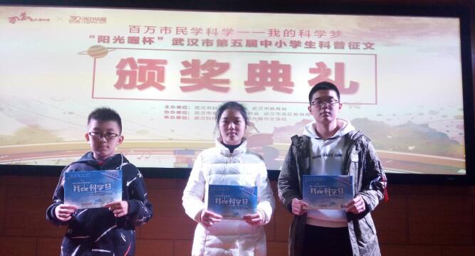 由、市教育局联合主办、武汉阳光喔作文学校冠名,武汉科技报社承办的2018年“阳光喔杯”百万市民学科学——我的科学梦武汉市第五届中小学生科普征文活动圆满收官。