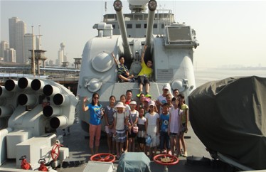 8月13日上午,空后社区特组织辖区青少年参观位于武汉港旁的海军舰艇教育基地,实地体验海军文化。