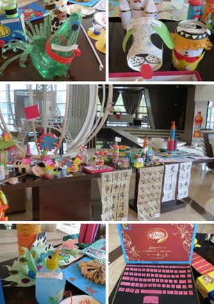 为增强居民的环保意识,我社区组织了一次“废旧物品再利用,看谁的手工制作美”活动。居民踊跃参加,纷纷拿出用废旧物品制作的手工作品。参加活动的居民惊叹,废旧物品可以变得这么美呀!