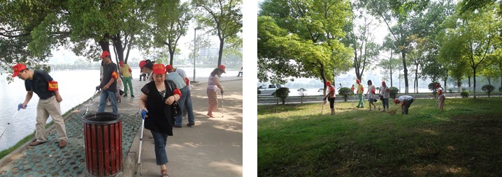 9月16日上午,江汉区北湖街横堤社区科普站组织社区志愿者20人,到西北湖周边进行了义务打扫卫生的环保志愿活动。大家不辞劳苦,沿湖一圈拣除烟头纸屑,清除杂物,为保护环境、美化家园贡献了一份力量。