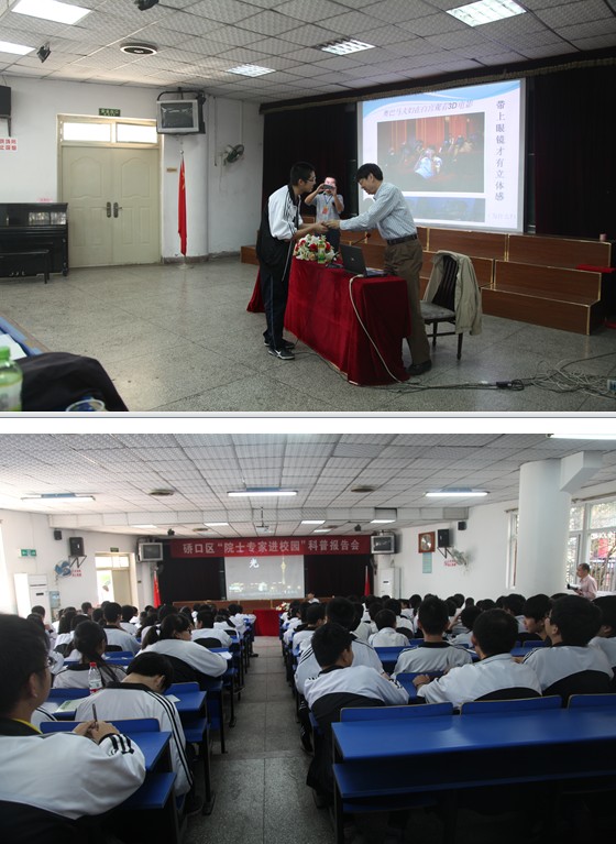 9月29日下午,2013年硚口区“院士专家进校园”科普报告会最后一场在市二十九中阶梯教室举行,该校高一、高二年级近200名学生认真聆听了中科院(武汉)物理与数学研究所研究员、博士生导师龚顺生教授带来的精彩报告《熟悉而神奇的光》。