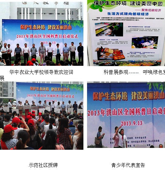 为贯彻党的十八大号召,2013年9月13日上午,洪山区政府组织各街道社区科普站在华中农业大学开展“2013年全国科普日启动仪式”,狮城名居社区科普站工作人员参加了此次活动。活动以“保护生态环境,建设美丽洪山”为主题,活动内容主要是市、区科普示范社区授牌仪式、青少年宣告、参观科普展板及参观华中农业大学标本馆等。