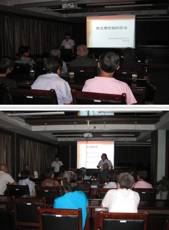 随着人们生活水平的提高,工作压力及生活习惯的影响,现在的人们越来越多的出现各种生活疾病,身体状况越来越差。正因为如此,人们对身体健康保健的意识也在逐步提高,应广大居民的要求,9月23日社区特意邀请了张家湾街卫生服务中心的陈主任等人来我社区,给社区居民进行了一场关于健康生活医疗保健的讲座。居民都踊跃的参加,通过这次讲座,大家对高血压、糖尿病等疾病都有了一定程度的了解,知道了该如何预防及诊断这类疾病,如何更好的保护自己的身体,对这次讲座,居民是受益匪浅。此次活动,深受广大居民好评,今后还要多多开展。