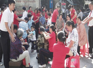 金泉社区工作人员早早布置好场地,大唐养生馆技师们娴熟、精湛的技术,吸引了大批居民参加,此次活动最多的一天为辖区的60多位居民提供了免费按摩。两位技师在社区工作者的带领下,来到教师小区行动不便的残疾人刘锦霞家中,为残疾人及监护人宣传自救互救技能相关知识,特别提供了上门服务,使他们感受到了社区大家庭的温暖和关怀,露出了开心和满意笑容。