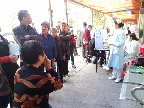 早上9点,活动室门口就被围的水泄不通,老人们一个个排着队进行白内障和视力的检查,对检查出有问题,专家们耐心的讲解治疗方法,同时眼科医生们还向检察的老人们发放宣传资料,为老人们细致地讲解了如何正确用眼、早期发现眼病、早期治疗等方面的知识,提高社区老年人正确的用眼意识。