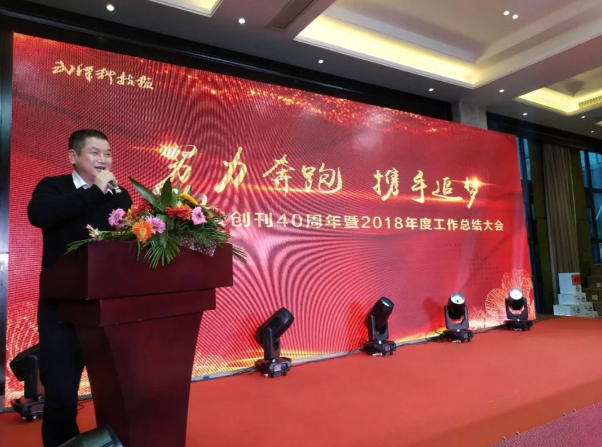 武汉科技报社长、总编辑陈海涛对报社的工作做了总结报告。武汉科技报社在40年前由和武汉市科技局联合主办,经历半月刊、旬刊、周刊,从周一刊到周三刊,版面从四开四版到四开十六版,从单一的出版报纸到纸质、网站、数字报纸、微信微博、手机报和自媒体融合发展,并与全国多家知名网络媒体合作,形成多位一体的全媒体传播格局。40年来,科技报人不忘初心,宣传科技政策和科学技术知识,促进科技事业发展。正是几代科技报人的坚持和守望,2018年,武汉科技报先后获评为“全国优秀科技报”,“中国报业改革开放40年先进经营管理单位”,江城科普快车项目获评全国十大科普品牌。2018年,本报积极践行习总书记提出党的新闻舆论工作方针,紧紧围绕科字做文章,进一步调整报社产业结构,拓展业务领域,实现持续、健康发展。
