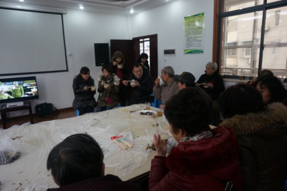 在社区老年日间照料室内,社区还为老年居民端上了热气腾腾的象征幸福团圆的汤圆,老人们欢聚一堂,边吃边聊,脸上露出幸福的笑容。