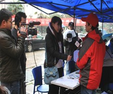 当天上午,尽管天气寒冷,小雨霏霏,但恶劣天气丝毫没有影响到大家的热情,也没有降低居民对环保的支持和关注,前来参加活动的居民络绎不绝。上至70多岁的老人,下至4、5岁的幼童,场面十分热闹。活动现场,志愿者们热情高涨,他们分成环保宣传、室内环境空气监测、问卷调查三个小分队,通过图文并茂的环保宣传展板、宣传册和环保视频资料,有条不紊的为前来咨询的群众服务。社区干部向居民讲解计生、户口、就业、创卫等政策流程;志愿者就近几年来人们普遍关注的POPs污染和PM2.5污染问题对居民进行环保知识问卷调查并答疑,了解他们的环保意识和习惯;室内环境空气监测小分队则扛着沉重的监测仪器,和电视台记者一道冒雨到几户新装修的居民家中进行“室内环境空气监测”服务。