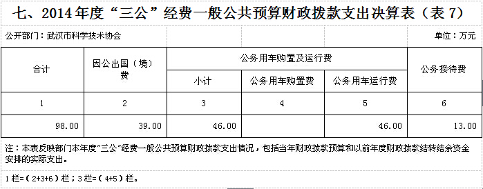 七、2014年度一般公共预算财政拨款“三公”经费支出决算表(表7)
