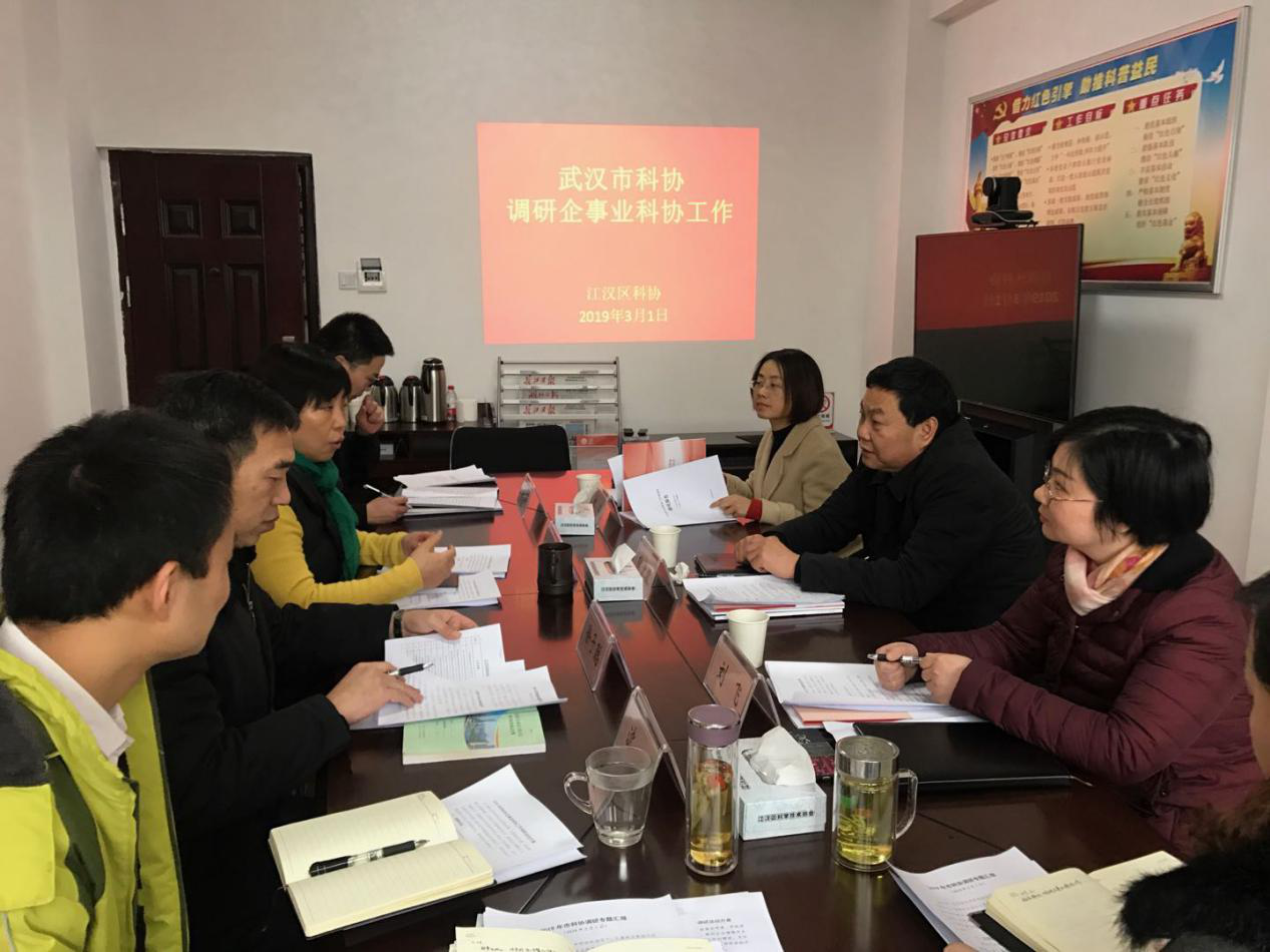 2019年3月1日,市科协副主席、党组成员熊少明及企事业科协工作部负责同志走访调研江汉区企事业科协工作。区科协党组书记、主席杨艳,副主席徐子聪等陪同调研。