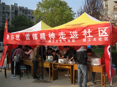 2014年3月27日,为期两天的电脑义务维修活动在洪山区狮子山湖工社区圆满落幕。本次维修活动由我社区居委会主办,湖工大 电器学院志愿者服务队承办。在两天的时间里,为广大师生、居民解决了“废旧电器利用”和 “家电维修难”的问题、普及家电科学的使用方法等相关知识。