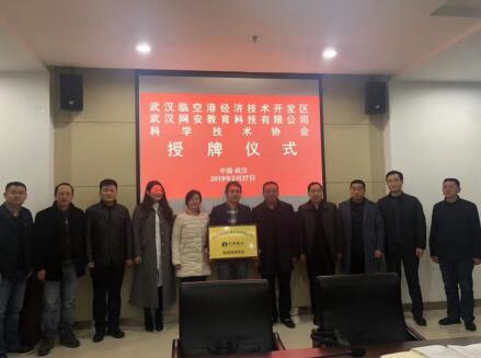 随后,市科协企事业部部长刘飞和区科协副主席李智为武汉网安教育科技有限公司科协进行授牌。