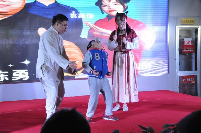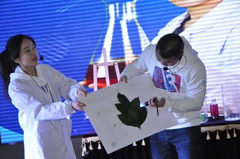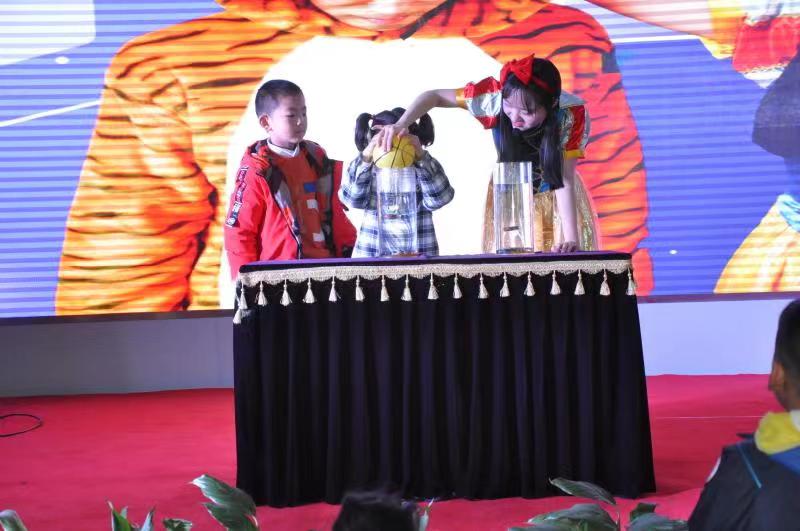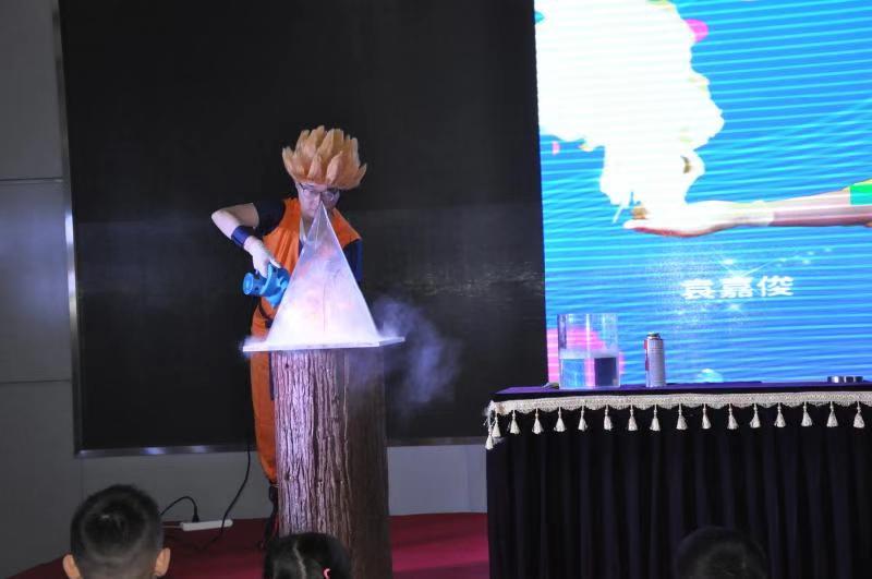 在活动互动环节,现场观众在回答主持人的提问或完成主持人设置的挑战后,收到了主持人奖励的礼品券,可以领取“空气炮”、“旋转的风铃”、“小球发射枪”、“纸飞机发射器”、“会变色的魔瓶”等精美奖品。其中,蔬菜由绿色变色,把红色、绿色的溶液倒入蓝色溶液中,溶液变成红色等表演深受观众喜爱。
