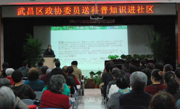 在活动现场,中科院武汉分院的植物博士现场讲授什么是雾霾、它从哪里来、怎么样生的、如何治理等知识,为居民现场解答哪些植物可以净化室内空气、哪些室内植物可以预防雾霾。现场还组织了互动,对积极踊跃答题的居民进行了奖励,现场互动阶段动高潮迭起,本次活动免费向居民们发放百余盆散尾葵、虎尾兰、绿萝,科普宣传资料280份。
