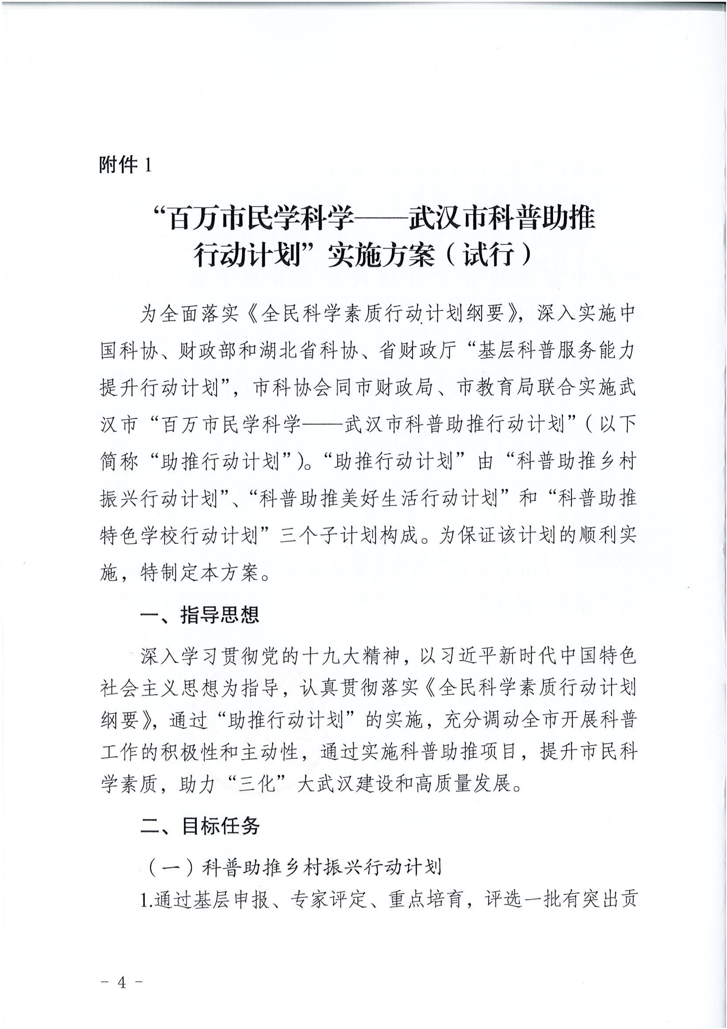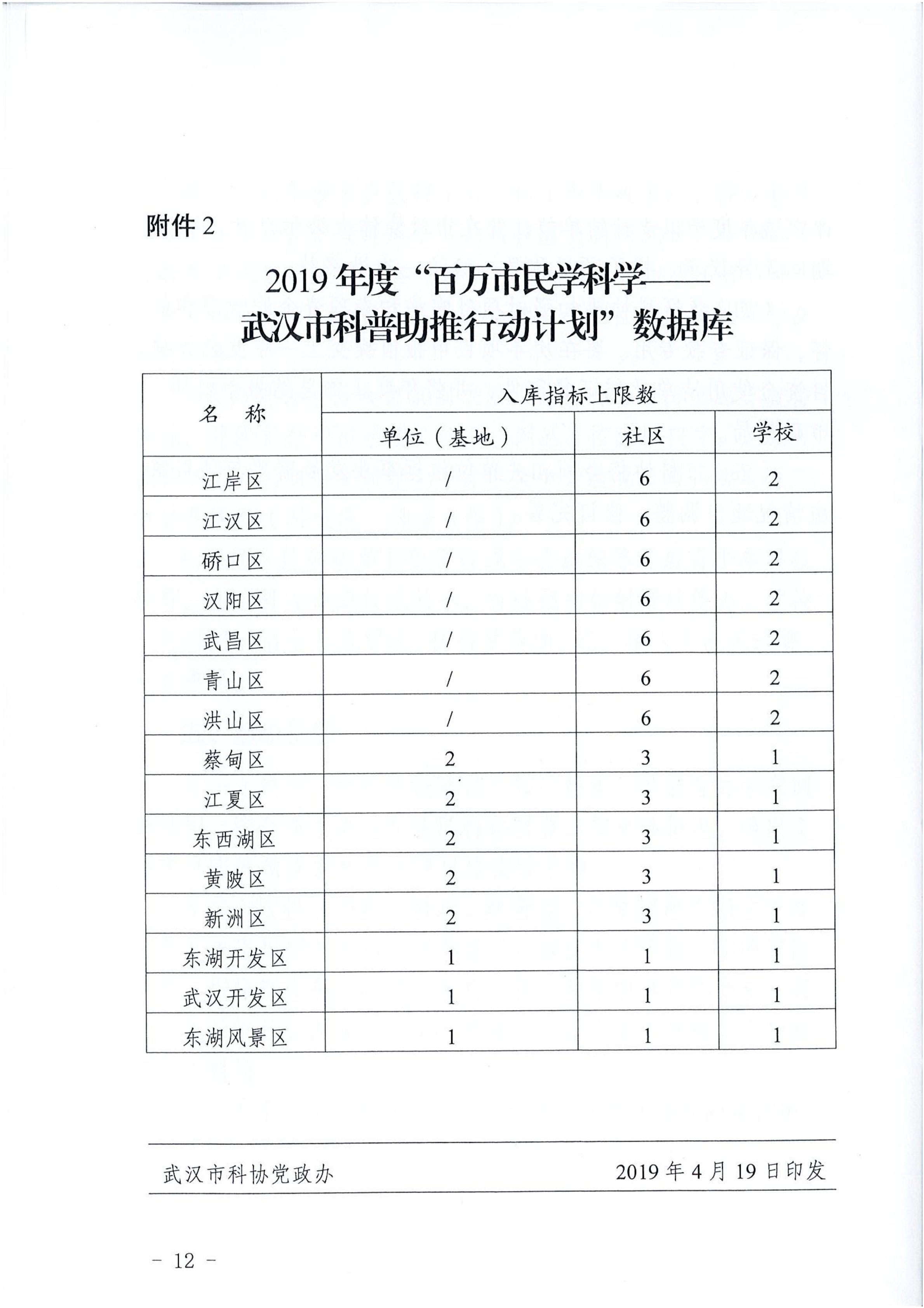 关于组织实施2019年度“百万市民学科学——武汉市科普助推行动计划”的通知