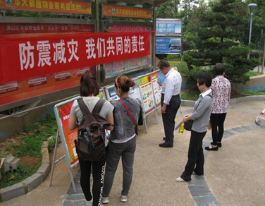 在社区华大家园广场,社区工作人员摆放防震减灾科普展板8块,设立了宣传咨询台,悬挂了宣传标语,发放地震、台风、暴雨、大风、雷电等气象灾害防护指引及各类气象科普宣传材料和印有相关宣传的扇子等形式的科普资料300多份,接受群众咨询100余人次。广大群众积极参与防震减灾科普宣传活动,纷纷咨询提问有关地震知识。通过地震科普知识进社区宣传活动,参加活动的群众了解了气象灾害防御、防震减灾科普知识、防震避震、识别地震谣传等基本常识,进一步增强了广大社区群众对防震减灾工作的重视和理解,提高了应对地震灾害的应急避险和自救互救能力,达到了预期的宣传目的。