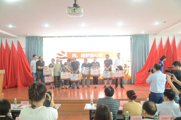 “圆梦微心愿”活动环节,区科协机关党支部和教育电视台党总支对结对共建的邮三社区、扬子社区的10位困难党员赠送了空调被。