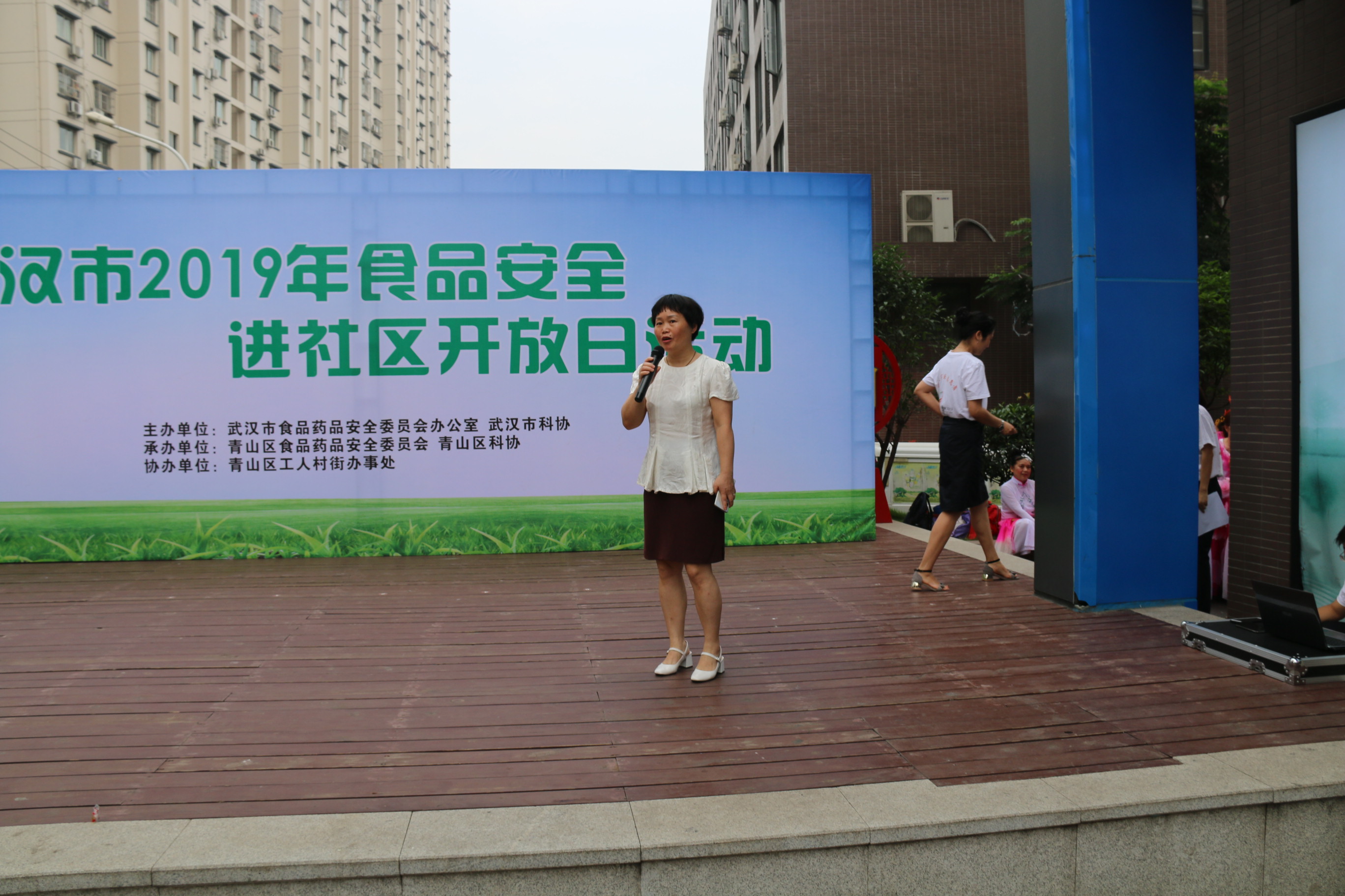 市科协网讯 7月5日上午,以“尚德守法 食品安全让生活更美好”为主题的武汉市2019年食品安全进社区开放日活动,在青山区工人村街青和居社区举行。活动由市食品药品安全委员会办公室、市科协联合主办。武汉市市场监督管理局副局级领导干部金汉林,党组成员、副主席郑华,青山区人民政府副区长周斌等领导出席活动。