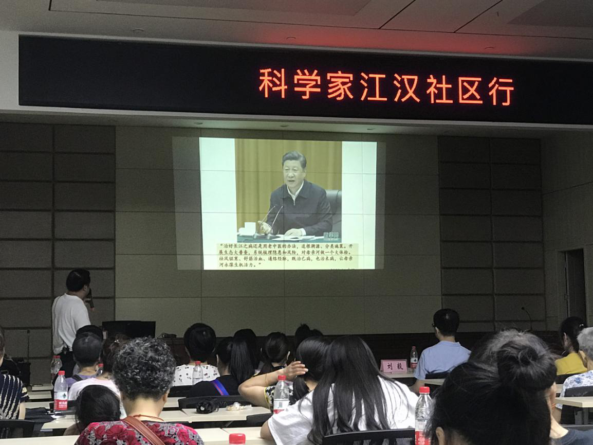 7月17日,“科学家江汉社区行”第六场活动在民意街舞台社区举办,特邀中国科学院水生生物博物馆馆长、中国科学院武汉科学家科普团团长张先锋,围绕“长汉大保护要保护什么?”讲解了“长江的前世今生、长江里有啥、长江病了、大保护的核心”等四个方面的内容。区科协副主席徐子聪、民意街工委副书记艾青枝、中国科学院武汉文献情报中心副主任江洪以及民意街辖属7个社区的居民近100人聆听了这次讲座。