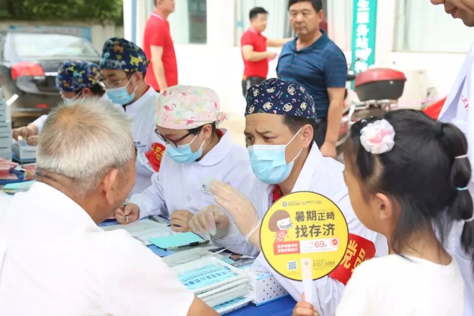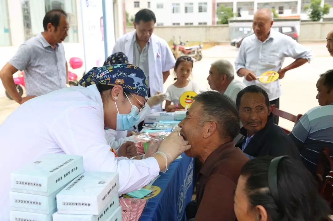 各分队各司其职,分工协作。存济口腔医院医生耐心询问村民的健康状况、进行病情诊断、讲解治疗方法,并热心地普及口腔疾病预防知识,在炎热的户外环境下,无偿为村民们发放药品和口腔健康知识宣传资料。