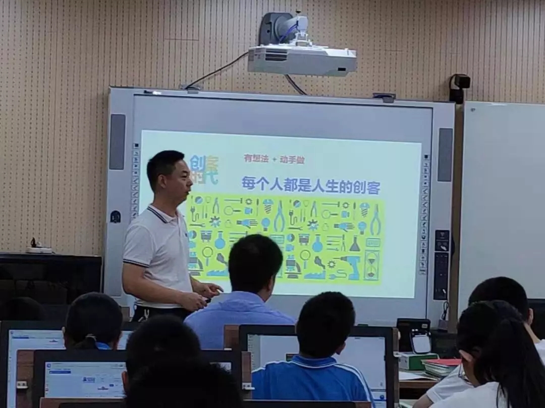 50人的计算机教室坐满了师生,正在聚精会神地聆听武汉市创客教育联盟秘书长王康老师的讲座。