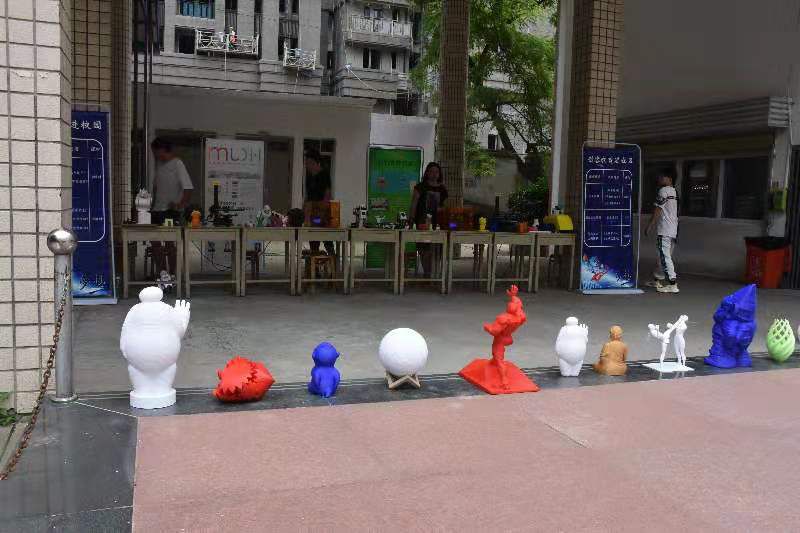 活动现场布置了部分创客活动作品的展台,展示相关智能机器人,3D建模打印技术,传感器技术等。展台前吸引了诸多来访家长和学生的驻足围观,对于活动的开展特别感兴趣和支持,创客活动让人体验到科技的非常魅力。