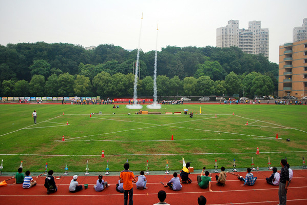 武昌区委副书记曾琦宣布武昌区2014年科技活动周暨第十届青少年科技活动大赛正式开幕。随后,大型火箭模型腾空而起,20枚水火箭齐发,拉开了本次科技活动周空模、车模社团表演活动的序幕。由学生操控的电动和油动遥控车辆模型展示,小型固定翼、纸飞机、大型FPV固定翼飞机、异形飞行器、多轴飞行器或多机3飞,或自主飞行,特别是3D花式机特技、拉烟的精彩表演让在场的师生、家长代表赞叹不已,赢得了阵阵掌声,充分展示了全区中小学科技社团活动成果。