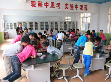 在科技活动周之际,蔡甸区第一小学在学生中举行了科学探究实验活动,其目的:是向学生开展以传播科学知识为主题的科普教育行动。走进校实验室,一群活泼的小学生正在围在8-9个小桌旁,认真的进行了导体与绝缘体的科学小测试。桌上摆放了电池、小灯泡、电源线、金属导体、橡皮、塑料、木筷等绝缘体。在老师的指导下,小学生分别对每件物体进行认真测试,看是否导电,并将测试的结果详细记录在测试单上。测试完后,学生现场提出的问题,得到老师一一的答复。活动现场异常活跃,学生们表现出了对实验活动的兴趣。