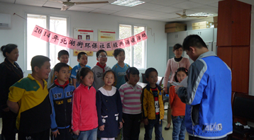 国学经典,是我们民族文化的瑰宝,千百年来作为人们的宝贵的知识和精神财富,它们滋润、涵养了一代又一代的仁人志士、贤者精英。为了弘扬祖国优秀传统文化,激发青少年爱国热情,增强民族自豪感和使命感。为了弘扬中华民族灿烂文化,提升青少年国学素养,丰富社区文化生活,2014年4月27日上午,江汉区北湖街环保社区在社区科普图书室举办了国学经典诵读活动,辖区有20多名孩子参加。