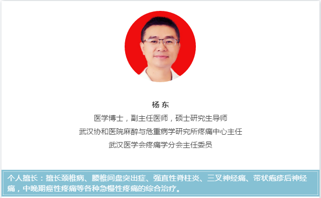杨 东 武汉医学会疼痛学分会主任委员、武汉协和医院疼痛科主任