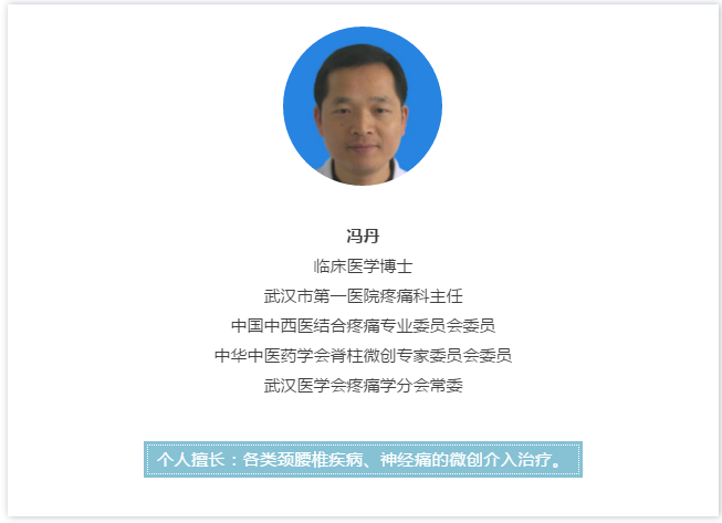 冯 丹 武汉医学会疼痛学分会常委、武汉市第一医院疼痛科主任