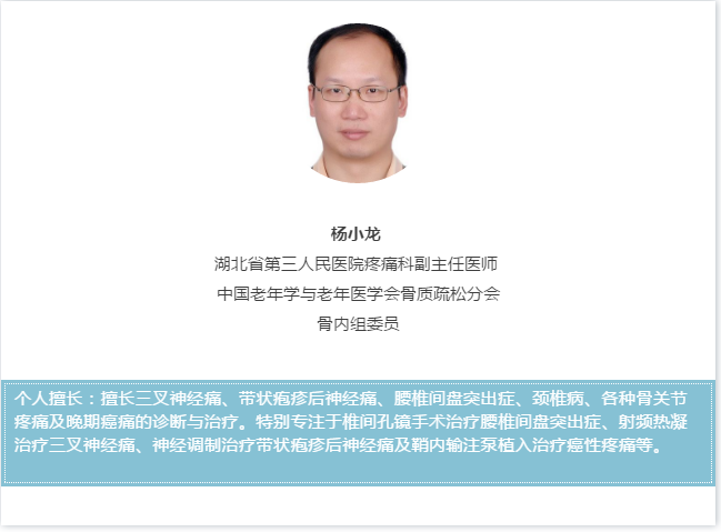 杨小龙 湖北省第三人民医院疼痛科副主任医师