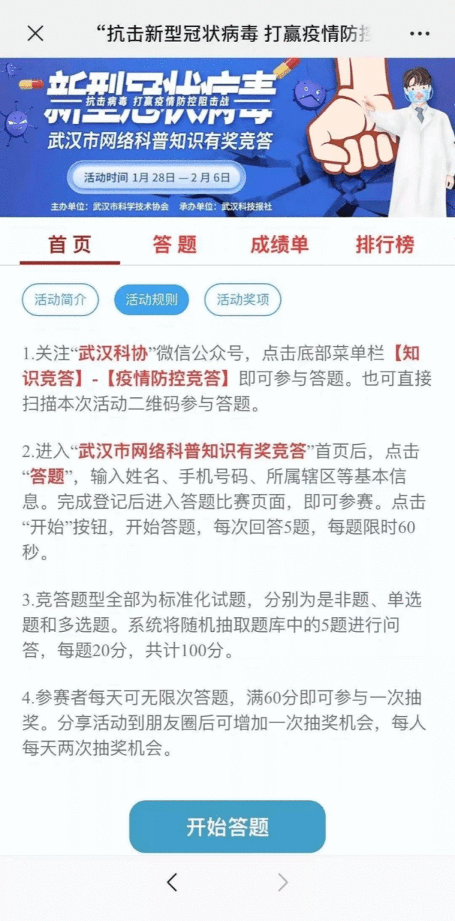 2、参赛者每天可多次答题,满60分即可参与抽奖一次。分享活动到朋友圈后可增加一次抽奖机会,每人每天有两次抽奖机会。