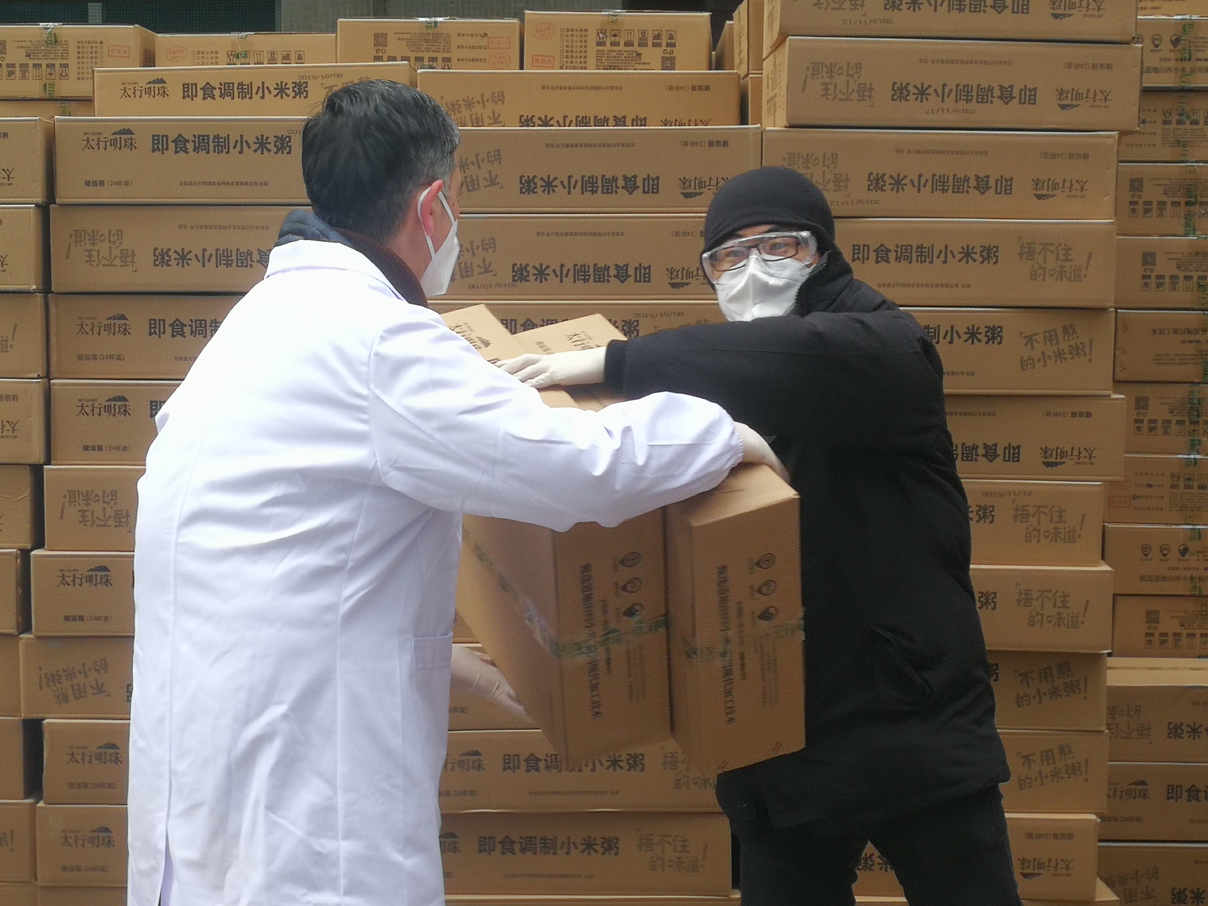 三晋大地情牵武汉新型冠状病毒肺炎疫情防控。2月2日上午,山西省科协委托向奋战在疫情前线的武汉地区医务工作者捐赠的首批物资——900件、2.16万桶山西十大百姓放心食品,太行明珠小米粥抵达武汉,并由武汉科技报社长、总编辑陈海涛一行代表将首批物资“点对点”定向送至武汉协和医院。