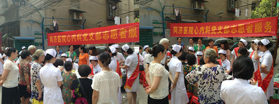 6月20日下午3点,为了维护育龄妇女健康,站邻园社区联合同济医院心内科专职医生,在社区居委会门前开展免费健康检查活动。活动主要是为站邻园社区中老年人免费筛查糖尿病、高血压、冠心病等心内科疾病,为社区居民提供较全面的免费健康检查。