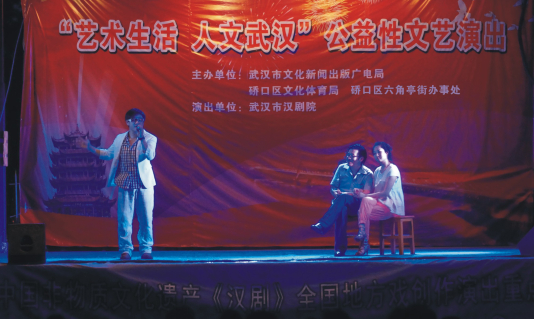 7月10日晚,由武汉市文新广局、硚口区文体局、六角亭街办事处联合主办的硚口区六角亭街公益文化惠民演出暨“艺术生活 人文武汉”武汉之夏纳凉晚会在中心嘉园休闲广场举行。区文体局副局长肖名实、街办事处副主任关晨曦等领导出席活动,区文化馆、街文化站、科协、10个社区和街道科普志愿者等参与了此次活动。